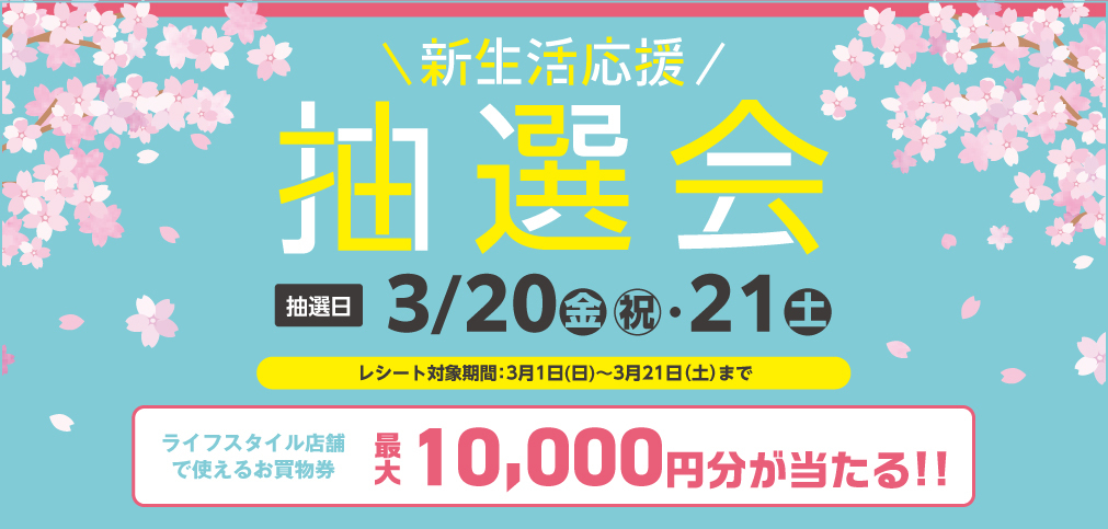 3/20(金・祝)~3/21(土) 新生活応援抽選会開催!