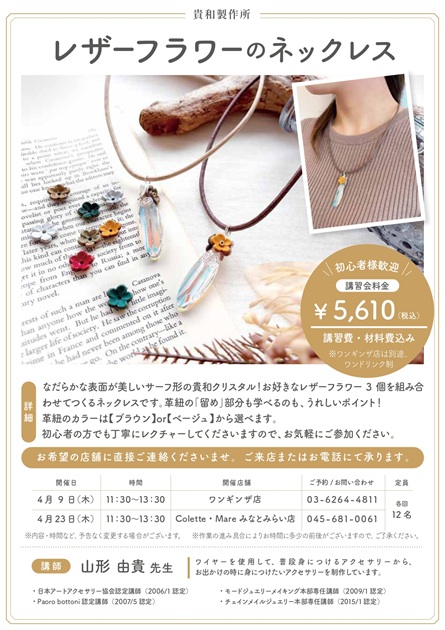 ワイヤーワーク講習会のお知らせ(4/9・23 開催)