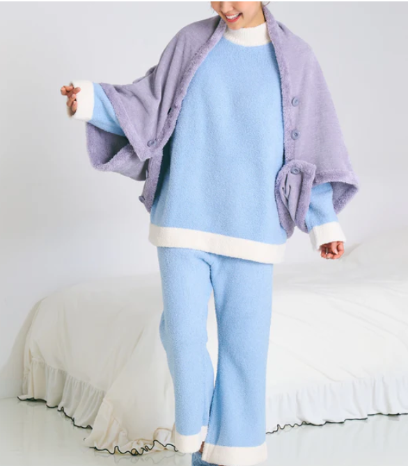 【リバーシブルウォームフリース 4WAYポンチョ アイボリー/ピンク/グレー/ライトブルー】