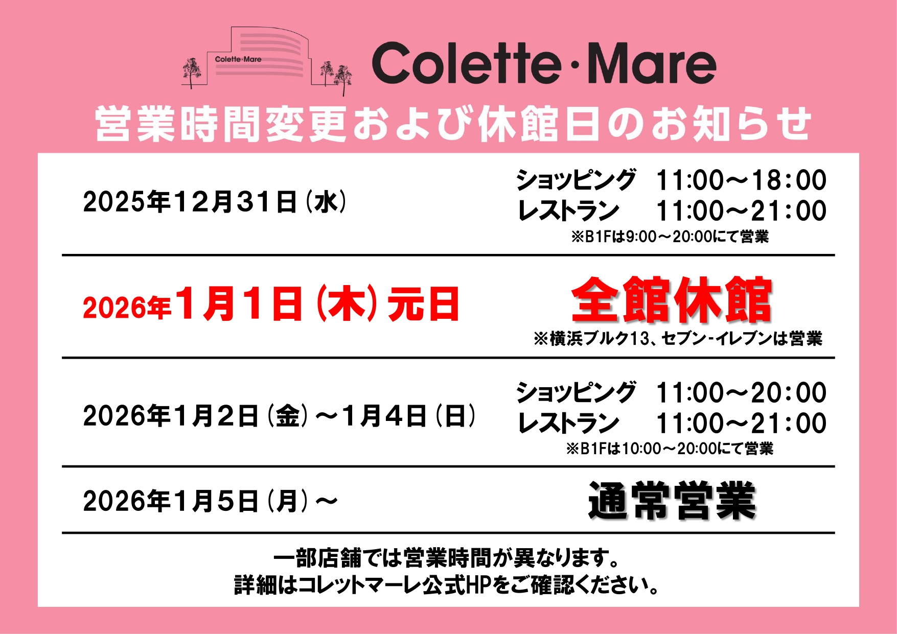 平素はコレットマーレをご利用いただき、厚く御礼申し上げます。