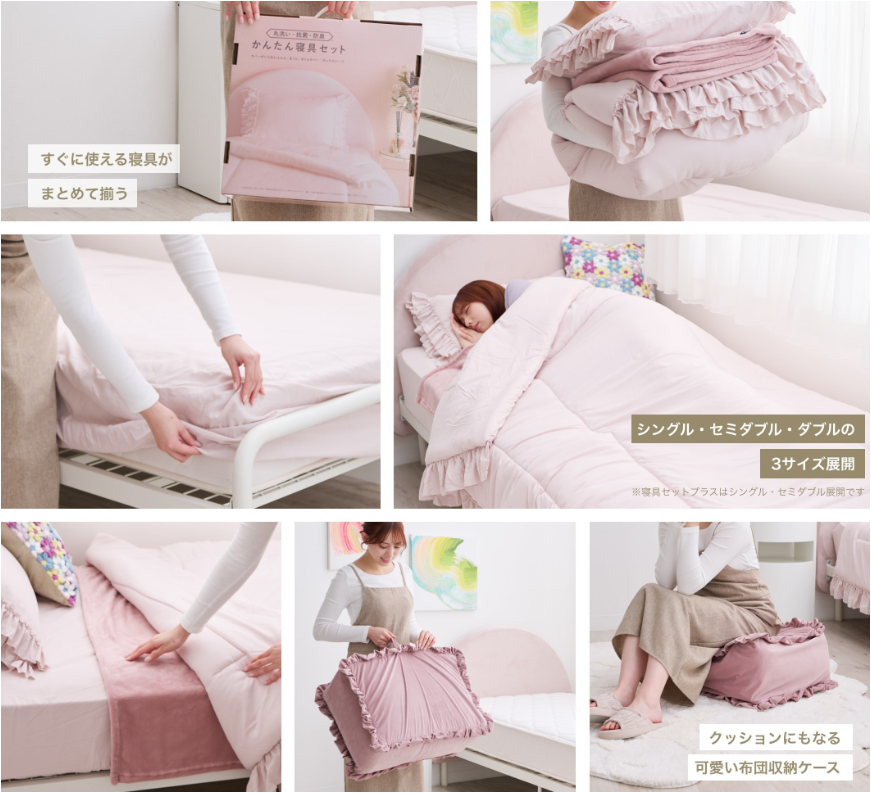 【かんたん寝具セット】カラー:ホワイト/ピンク/グレー