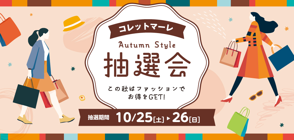 期間中、コレットマーレでのお買い上げレシート合計5,000円(税込・合算可)以上ごとに、1回抽選に参加できる 「Autumn Style 抽選会」を実施✨ 秋のお買物を楽しんだ...