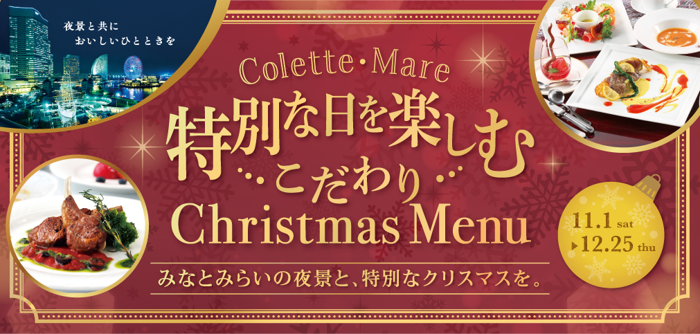 特別な日を楽しむこだわりChristmas Menu みなとみらいの夜景を望むレストランで。