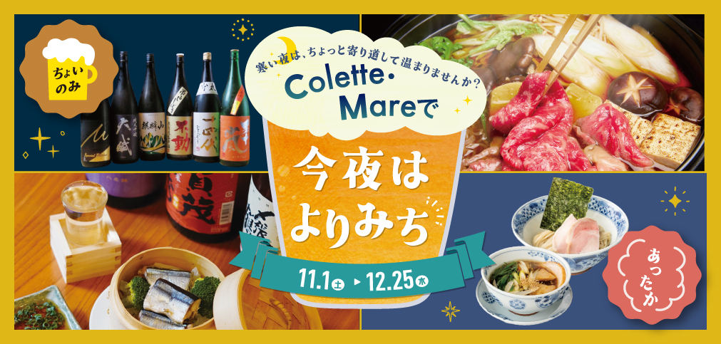 今夜はコレットマーレで、あったか“ちょい飲み”を。