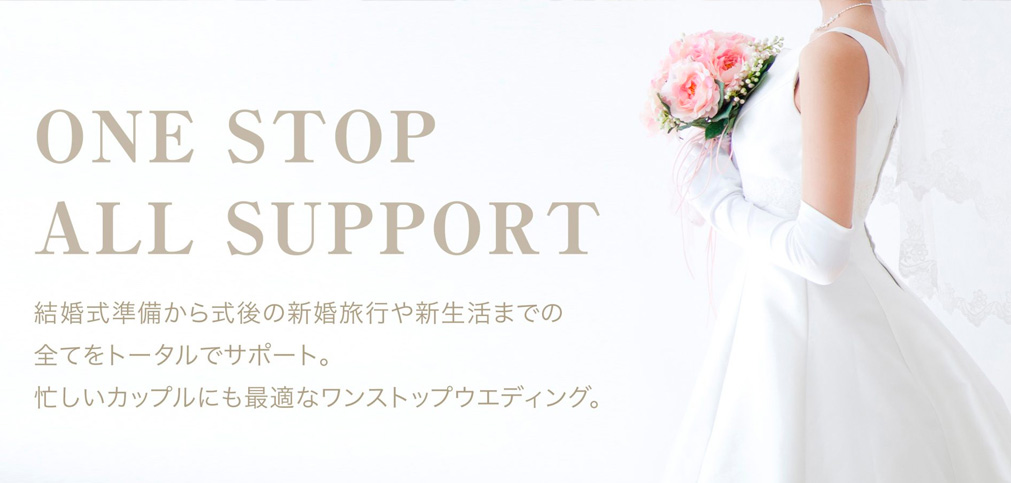 結婚式準備から式後の新婚旅行や新生活までのすべてをトータルでサポート ワンストップサポートで思い出に残る理想のプランをご提案いたします。 詳しくはこちら